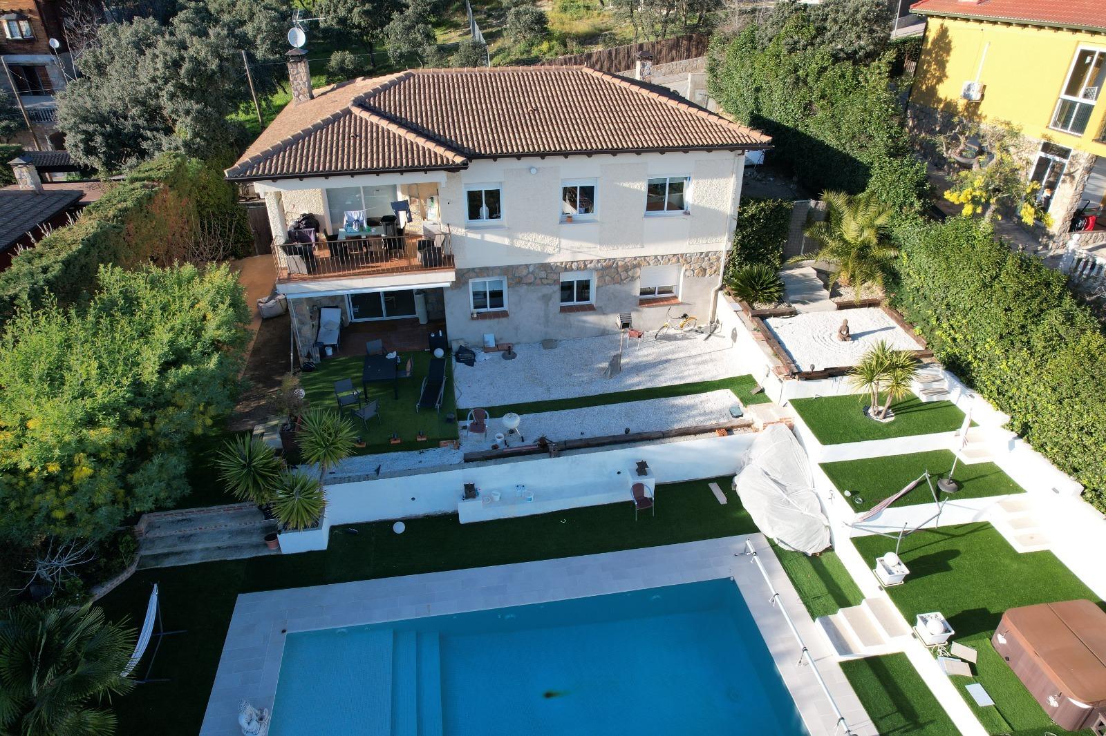 Excepcional chalet independiente con vistas panorámicas al valle — una propiedad única y exclusiva~Presentamos este magnífico chalet unifamiliar, una vivienda singular que destaca por sus impresionantes vistas abiertas al valle y por su diseño pensado para ofrecer el máximo confort. Con 275 m² construidos sobre una parcela de 985 m², esta propiedad combina lujo, amplitud y total privacidad en un entorno natural privilegiado.~Desde el primer momento, la vivienda enamora por su panorámica incomparable, un paisaje que transmite tranquilidad y bienestar. El interior ha sido concebido con materiales de alta calidad: carpintería Climalit, pintura lisa, suelos cerámicos y un estilo elegante que aporta armonía a cada estancia.~El luminoso salón se abre a una amplia terraza orientada hacia el valle, creando un espacio perfecto para relajarse y disfrutar de la belleza del entorno. La chimenea aporta un toque acogedor en invierno, mientras que en el exterior te espera una espectacular piscina infinity, diseñada para fundirse visualmente con el horizonte, junto a un jacuzzi ideal para momentos de descanso total.~La cocina, completamente renovada y equipada, destaca por su diseño moderno con península, creando un ambiente funcional y atractivo para disfrutar de reuniones familiares y cenas con amigos.~La vivienda dispone de cuatro amplios dormitorios que garantizan el descanso y la comodidad, además de una quinta estancia en la planta principal, perfecta como despacho, sala de juegos o gimnasio. Cuenta con tres baños modernos y calefacción individual por gas para asegurar una temperatura agradable durante todo el año.~El exterior es otro de los grandes atractivos de la propiedad: un encantador cenador con cocina exterior, barbacoa y horno de leña, ideal para reuniones al aire libre con vistas privilegiadas al valle. La piscina infinity, además, está climatizada mediante radiadores solares, permitiendo su uso cómodo durante gran parte del año.~Esta vivienda ofrece un nivel de intimidad difícil de encontrar, convirtiéndose en un verdadero refugio donde disfrutar del silencio, la naturaleza y la exclusividad.~Una ocasión única para vivir en un auténtico oasis privado, con todas las comodidades de un resort de lujo, pero en tu propio hogar.~¿Listo para descubrir tu futuro chalet? Contáctanos y ven a visitarlo.~~Características básicas~Casa o chalet independiente~1 planta~275 m² construidos, 219 m² útiles~5 habitaciones~3 baños~Parcela de 985 m²~Terraza~Segunda mano/buen estado~Armarios empotrados~Trastero~Orientación sur, este~Construido en 2006~Calefacción individual: Gas natural~Equipamiento~Aire acondicionado~Piscina~Jardín~